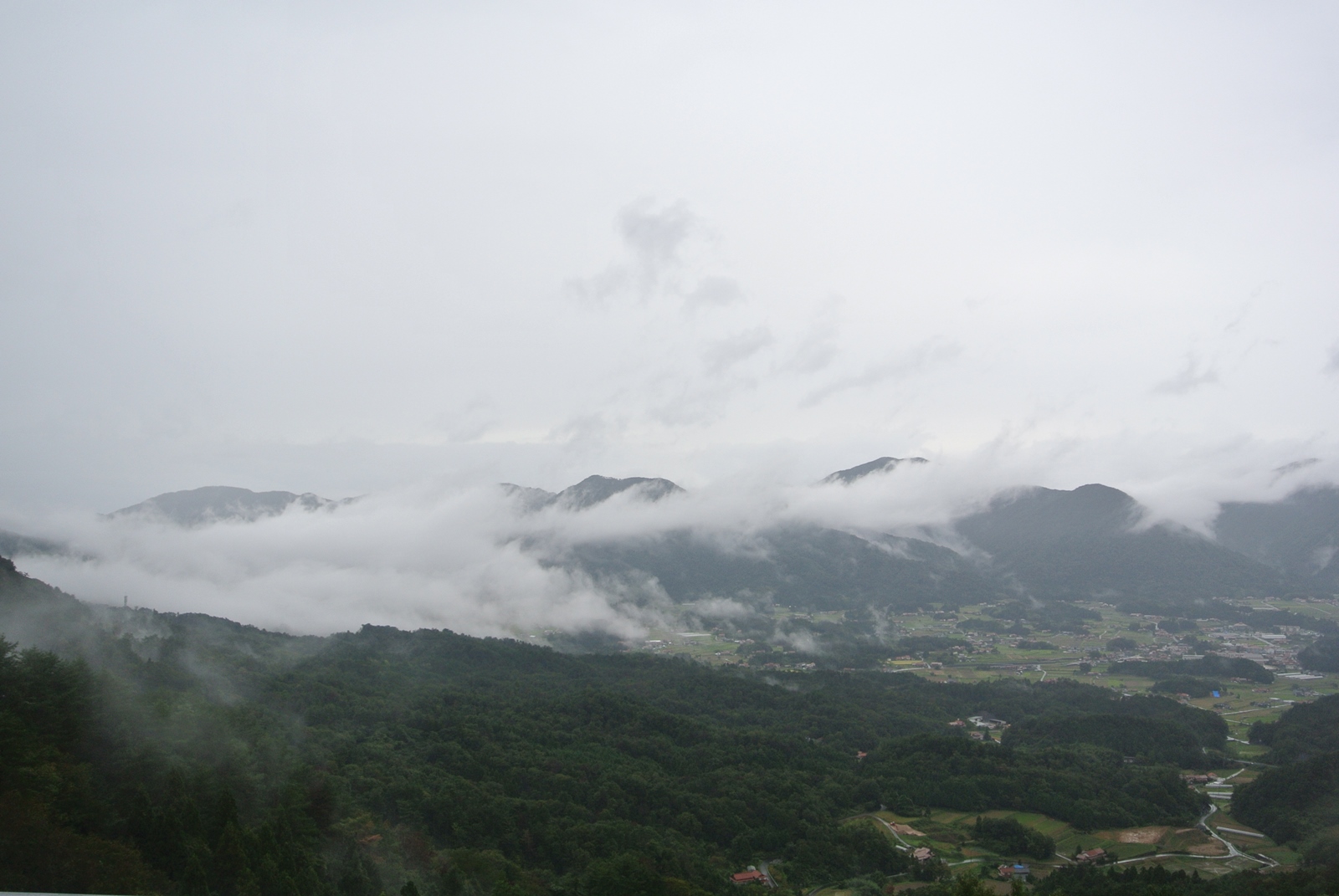 さて、ここは島根県邑南町。山の上の宿泊施設からの撮影です。中国山地のヘソのようなこの場所は「雲海」が出ることで有名。しかしながら生憎のお天気により、ただの曇り模様で残念至極(それはそれで見事な眺めではありますが)。昨年は晴れすぎて見れず。また来年の楽しみとなりました。