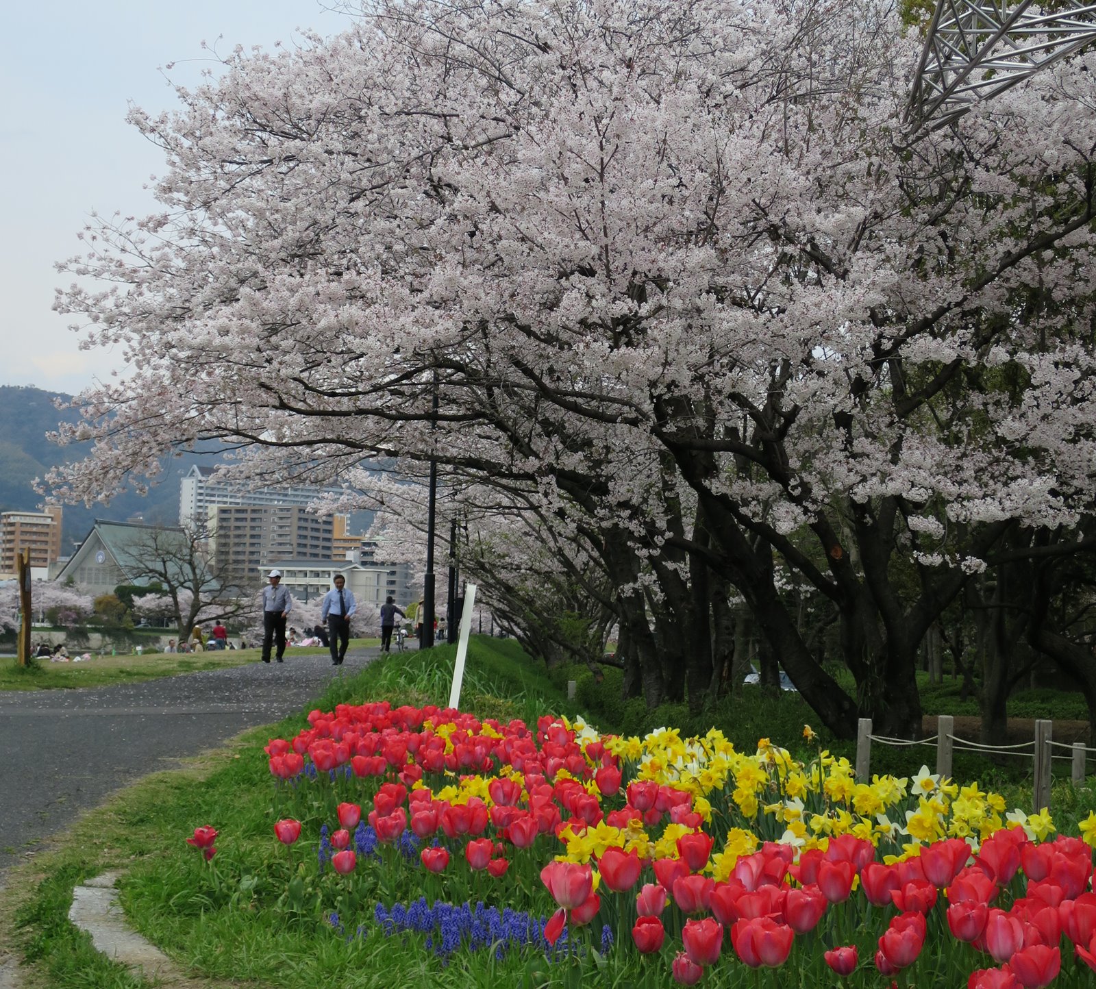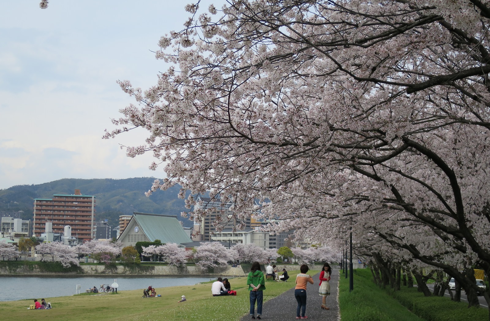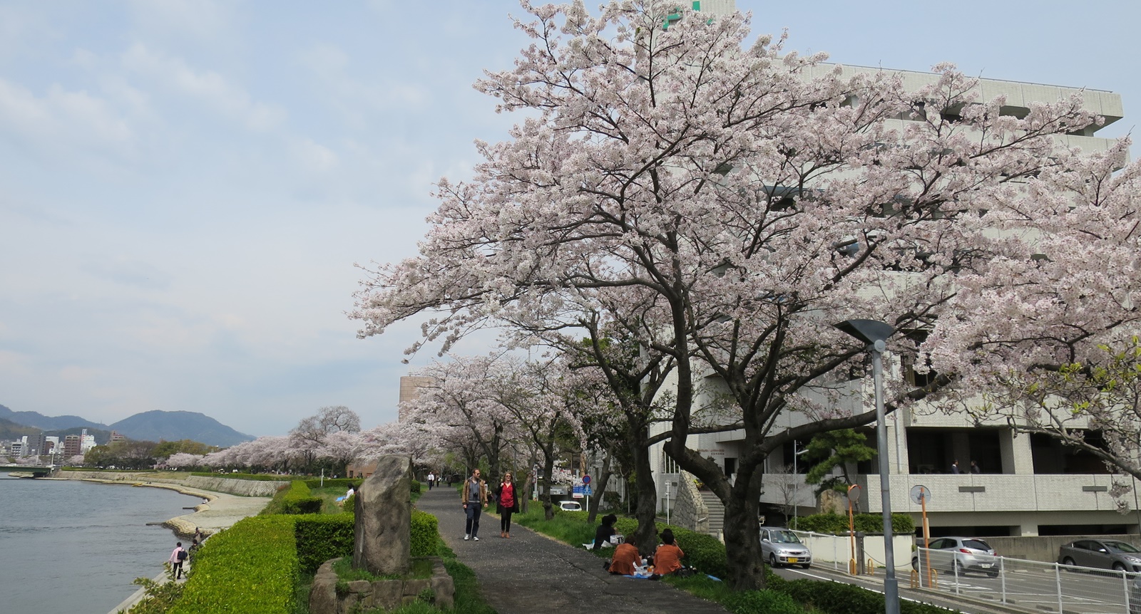 平和公園だけでなく、比治山、黄金山、江波山などなど、市内の桜の名所に足を運ぶと、どこもお花見客で一杯。