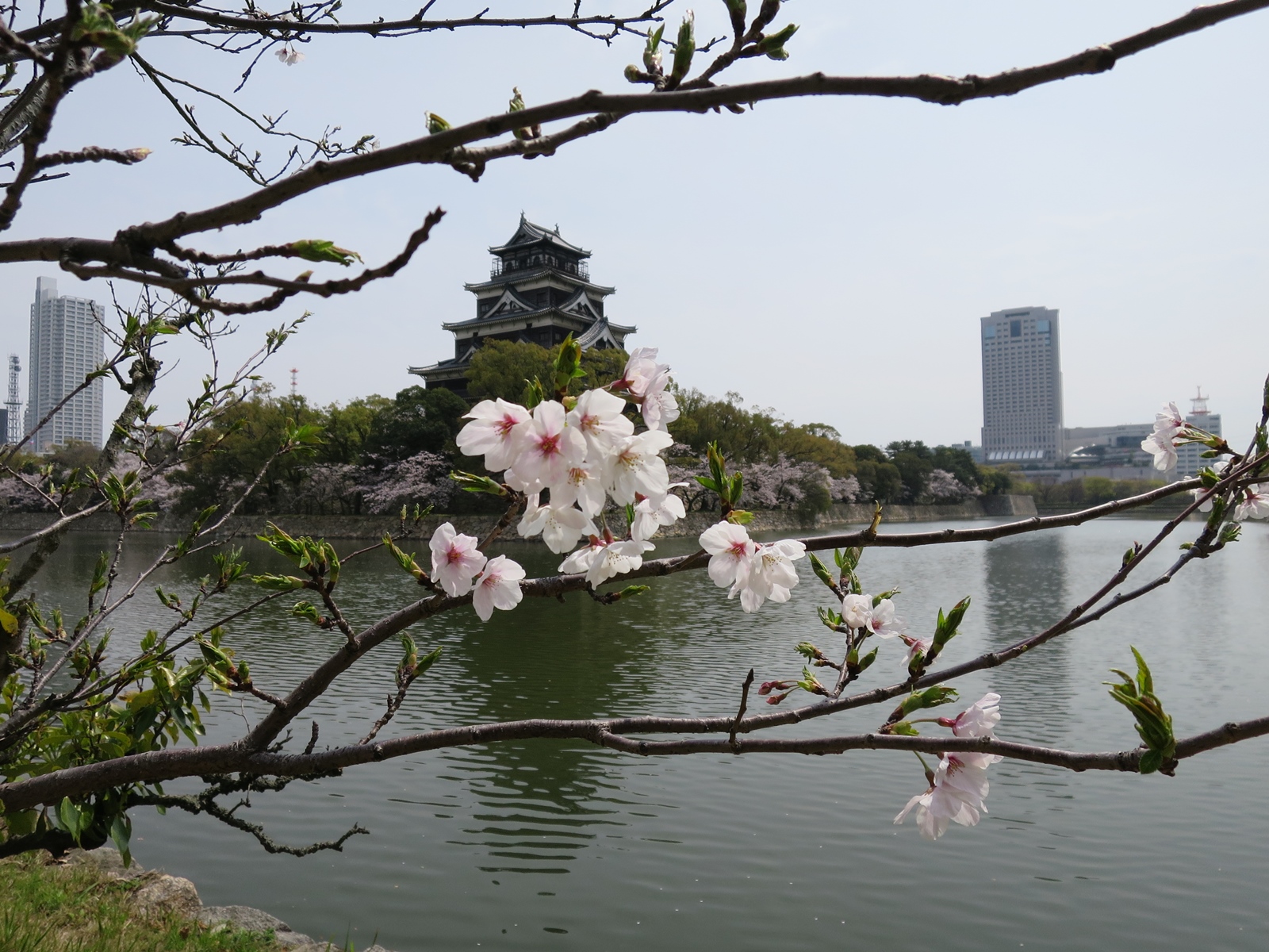 しばし目を楽しませてくれた桜に、名残を惜しみつつ、前回ブログの続き、広島城とその附近の光景を掲載します。