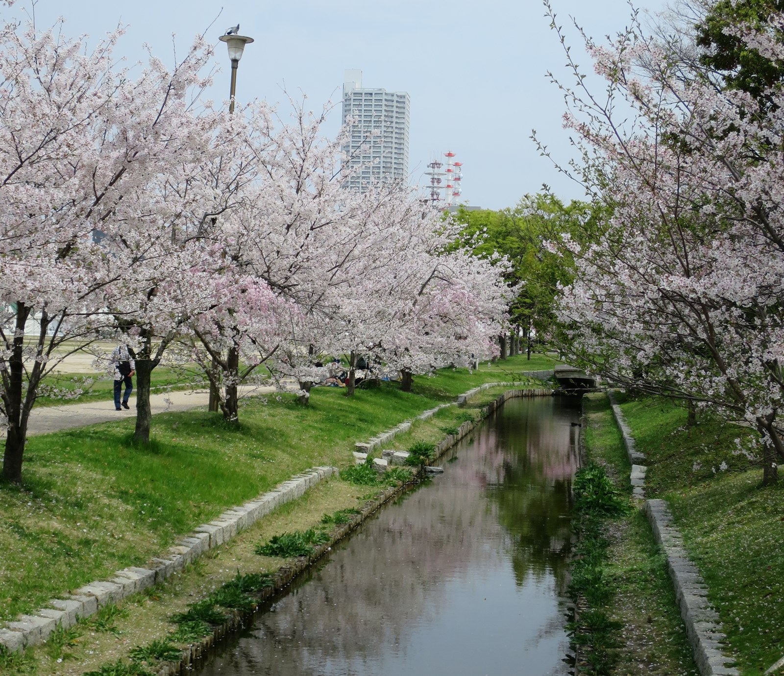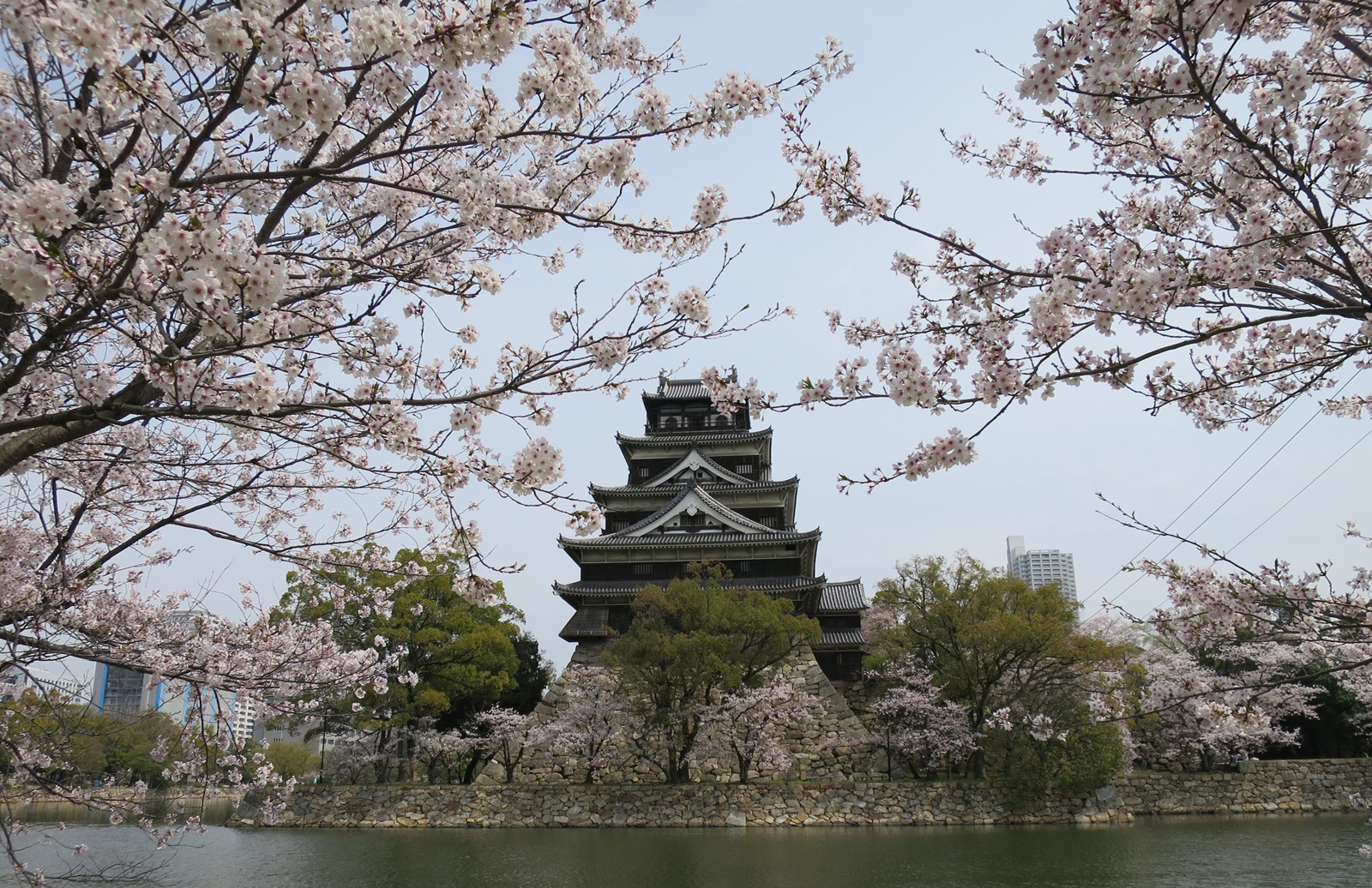 広島城西側の中央公園。ここの桜は小ぶりながら、なかなかの景観。