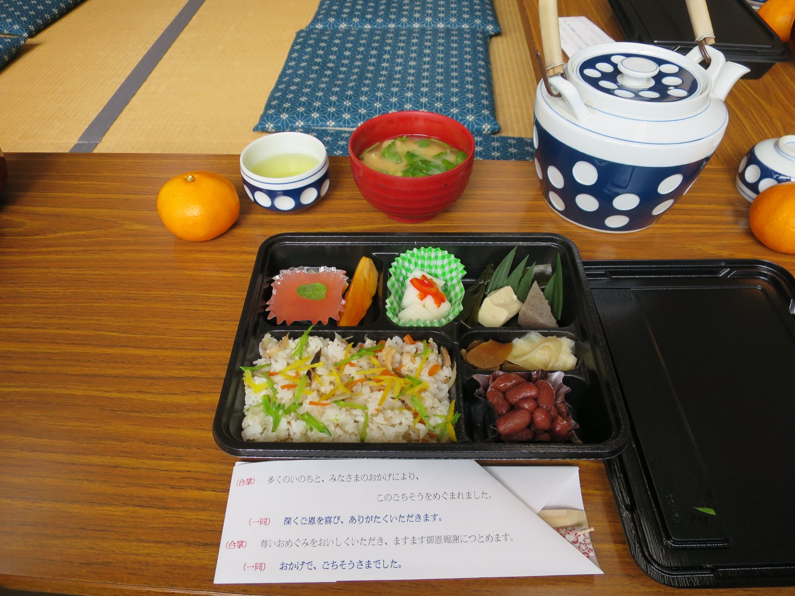 ご参拝の皆さんとご一緒に美味しく頂きました。報恩講法要に来られたことのない方、来年はぜひお参りして、おとき弁当を味わってみてください。