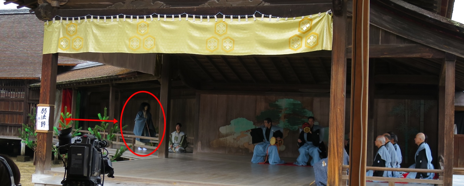 「弱法師は盲目だからぎこちなく演じればいいというものではない。視力を奪われた者は、聴覚やら足元やら他の感覚がすぐれて発達しているものだ。しかも俊徳丸はまだ少年だから動きに俊敏さがあるはず。また、四天王寺へと向かう参道は、彼にとって通い慣れた道なので、どこに何があるかという見当は大方ついている。だから、ある程度しっかりとした足取りでないと・・・」(記憶違いでしたらごめんなさい、文責副住職)