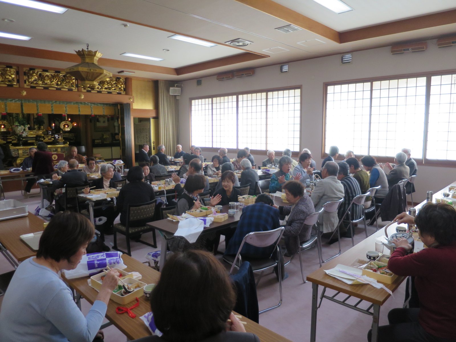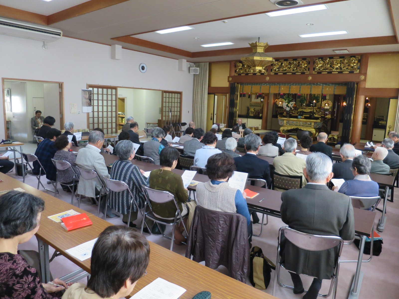今回は60名近くのお運びを頂き、机と椅子を並べた本堂が一杯に。