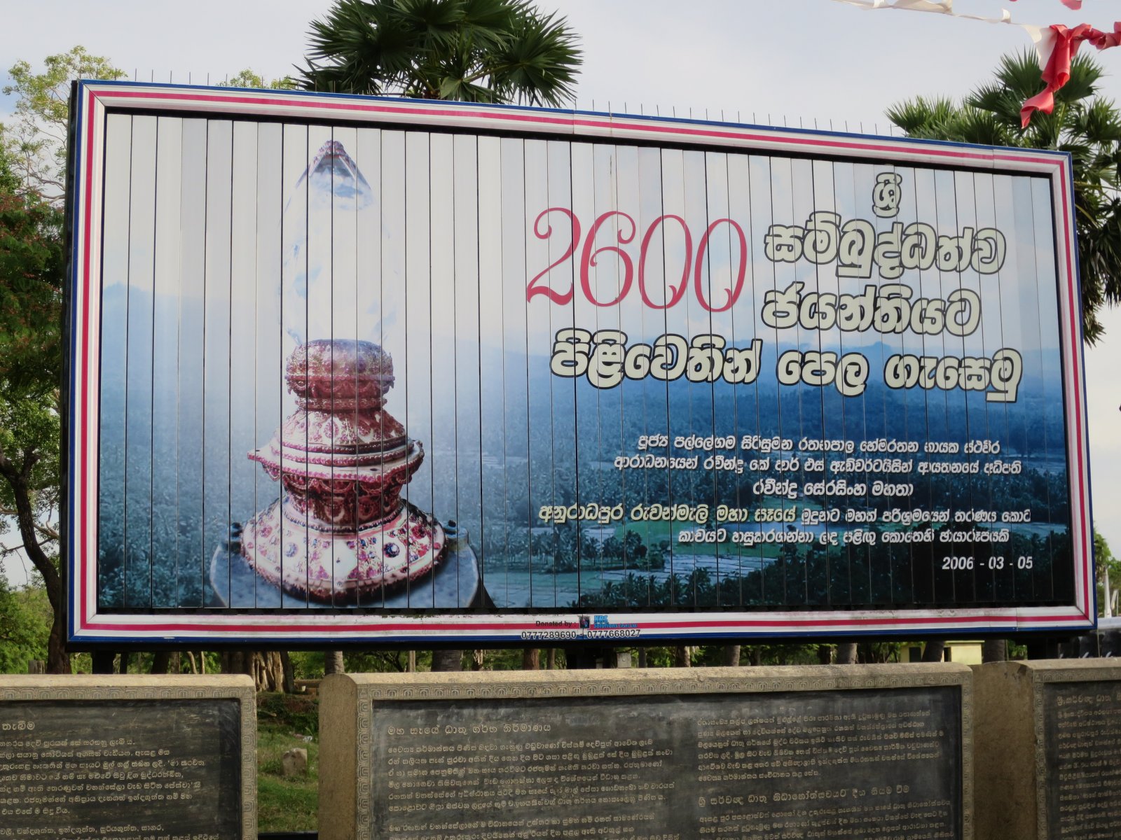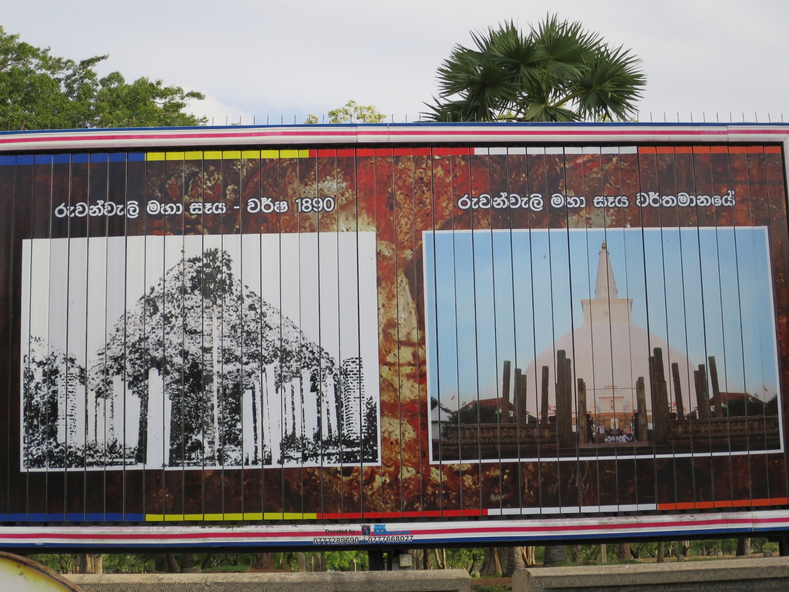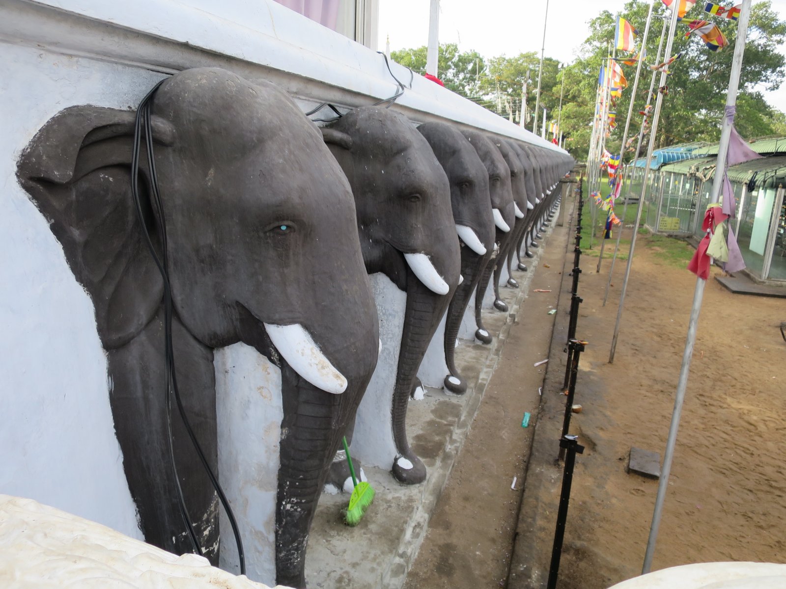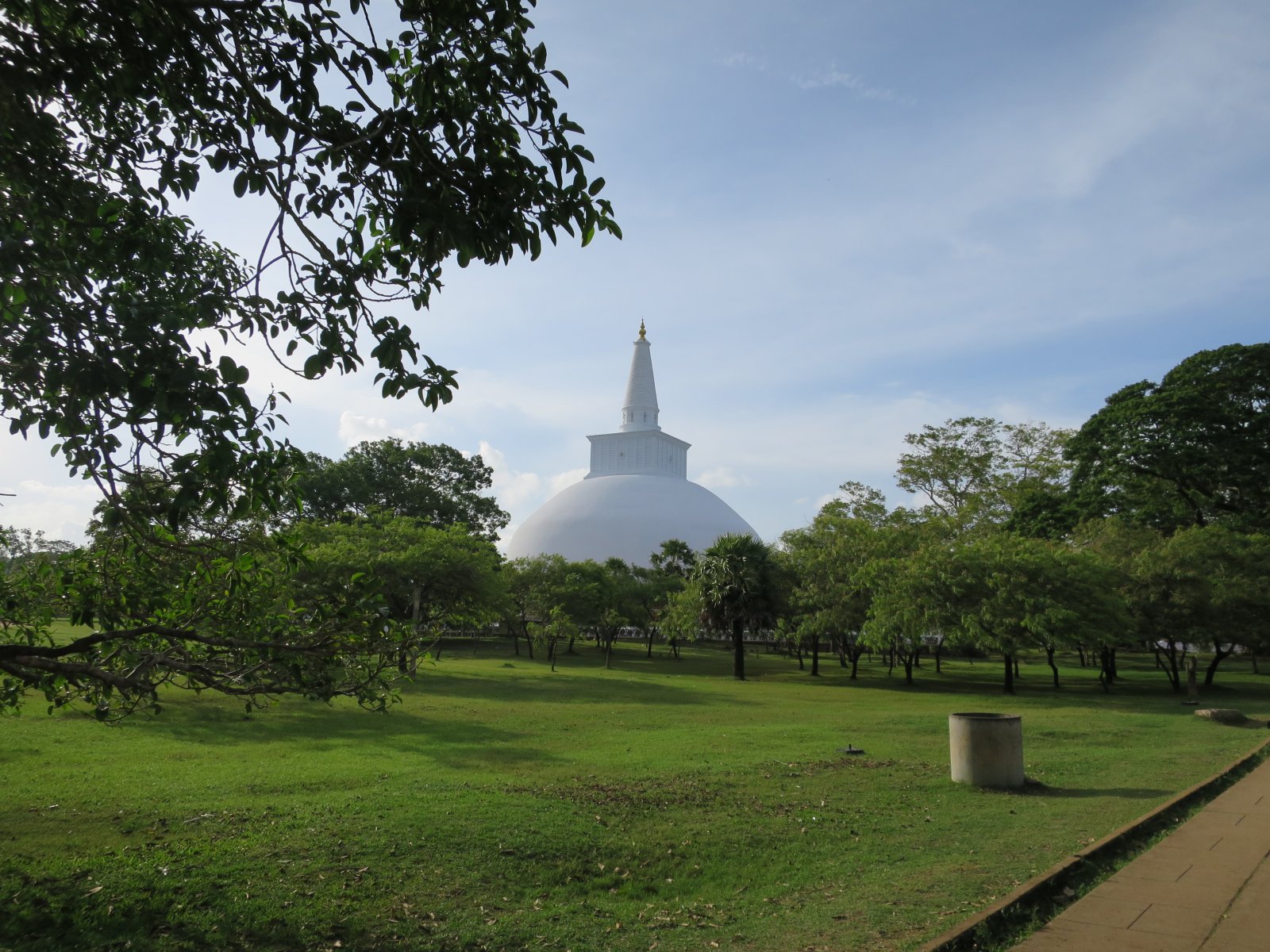 スリランカ滞在記(9) 2015 10/08 管理人ブログ 2015年10月8日 さて、スリランカ滞在記、前回から2週間以上も空いてしまいましたが、再開です。 前回、お釈迦様ゆかり(かもしれない)の菩提樹の葉にロマンを求めた私でしたが、ガイドさんのガイドし過ぎな現実的ひと言によって、その目論見はいとも容易く打ち砕かれたのでした。 しかしながら、そんな興ざめた私の心なぞお構いなしにツアーはぐいぐいと進行します。 スリー・マハー菩提樹から続く、やたらと長い参道に入りました。どこに向かっているのかと言えば・・・ 見えてきました。やたらとでかいあの白い塔が、我々の目指す先、ルワンウェリ・サーヤ大塔。 仏舎利塔、つまりお釈迦様のご遺骨の一部を納めた仏塔です。 だいぶ近づきました。塔の下に何かずらりと並んでいる物は何でしょうか。気になります。 ズームイン。 象の彫刻群! 象はその大きさと強さから権力の象徴とも言えるでしょう。その彫刻を周囲に沢山配置しているということは、この大塔がいかに重要な守護すべき建物であるかを物語っています。 さて、門で例によって靴を脱ぎ、裸足になって大塔のもとへと進みます。 しかし、でかい!55メートルの高さがあるそう。もっとも紀元前2世紀に建造された時には2倍の110メートルだったということです。 ところで㊤の写真左は1890年に撮影されたもの。何とこの古都アヌラーダプラは、その当時ジャングルの中に埋没していたのです。というのは、隣国インドから攻められて、既に10世紀頃、王朝はこの都を放棄し、拠点を南方へと移していたからです。つまり、1000年近い時を経て、ルワンウェリ・サーヤ大塔は復興されたことになります。 この案内看板は塔のテッペンにはめ込まれている、ガイドさん曰くダイヤだそうです。なんでも仏塔の頂点にはダイヤがはめ込まれているものであり、古来から泥棒に狙われ続けてきたらしい。 しかし、シンハラ語で書かれているため一切読めません。数字の2600というのはカラットを表す数字でしょうか。いや、そもそも、そんな巨大なダイヤがこの世に存在するのでしょうか。 塔のテッペンをズームインしてみます。 うわー本当にダイヤらしきものが光ってます!しかしちょっとでかすぎ。 ほんとにダイヤですか?ってガイドさんに聞くと、やれやれといった感じで「ダイヤデス」と言い張るガイドさん。 では、そういうことにしておきましょう(大人対応)。 さて、塔の真下までやってきました。先ほどの象さんが間近にいます。 これ、ひとつひとつがかなり丁重に造られています。 さすが、古都アヌラーダプラを代表する聖地! (続く) 管理人ブログ お宝拝見 スリランカ滞在記(10) この記事を書いた人 管理人 関連記事 素晴らしき世界 2021年3月3日 ANT-Hiroshima 被爆証言と医科学的解説シリーズ 第3回「原爆投下直後から約1ヵ月、救護活動に従事した11歳と13歳の少女たち」 2019年8月19日 ANT-Hiroshima 被爆証言と医科学的解説シリーズ 第1回「爆心地から540mで被爆した少女」 2019年1月29日 全戦争死没者追悼法要~前住職が法話します 2018年7月1日 スリランカ滞在記(42) 2017年11月6日 スリランカ滞在記(41) 2017年9月1日 平和之観音 2017年8月6日 スリランカ滞在記(40) 2017年5月16日 コメント コメントする コメントをキャンセルコメント ※ 名前 メール サイト 次回のコメントで使用するためブラウザーに自分の名前、メールアドレス、サイトを保存する。