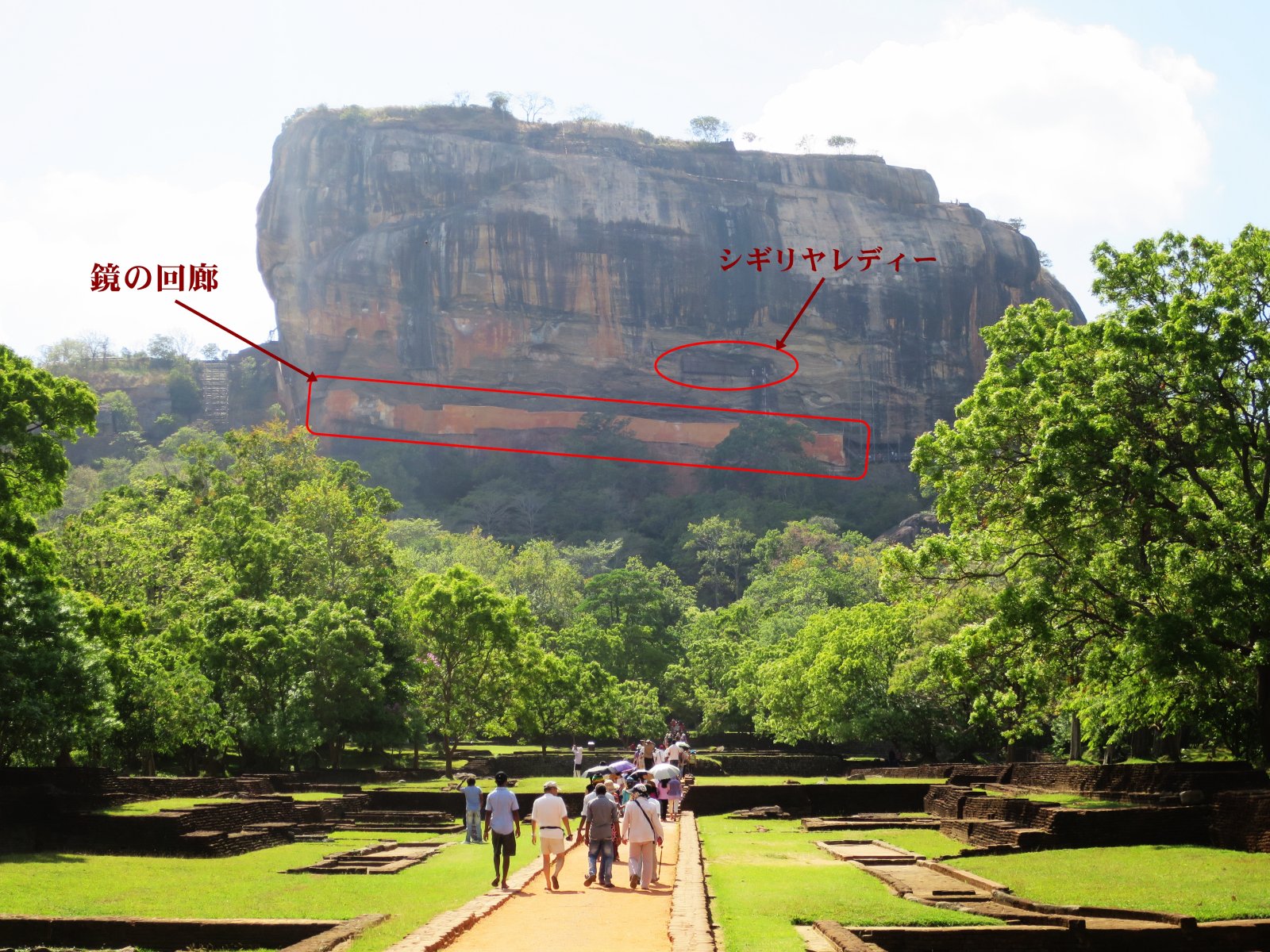 ガイドさん曰く、「ミラー・ウォール」はその名の通り鏡として使われていたんだそうです。1500年前、シギリヤロックに君臨した王は妾500名を抱えていました。もちろん選りすぐりの美女ばかり。そして彼女たちは、このミラー・ウォールに自らの姿を映しながら、美しく身だしなみを整えたというのです。