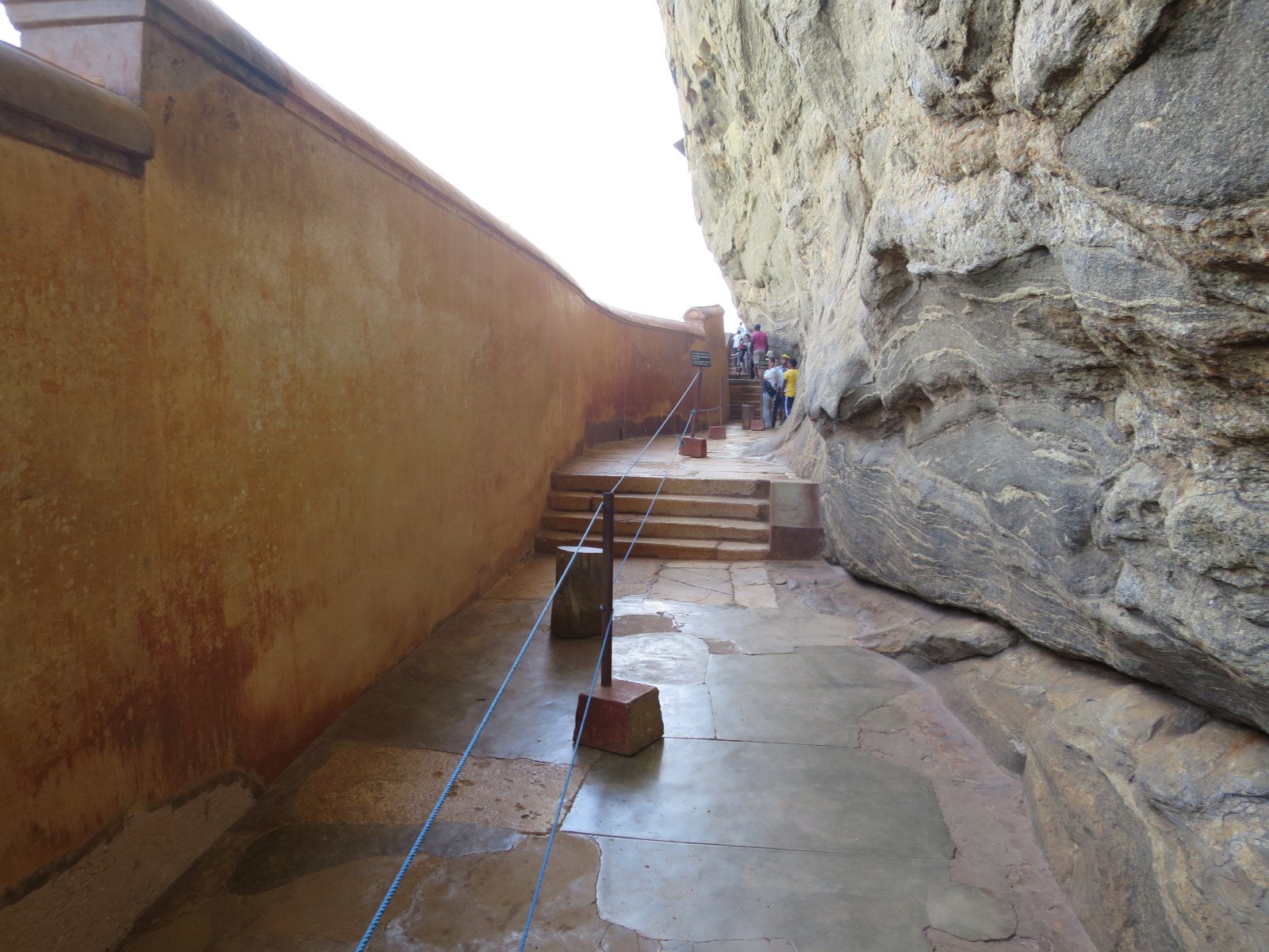 さて、この鏡の回廊「ミラー・ウォール」は、シギリヤロックの頂上へと至るメイン通路なのですが、その漆喰のような壁に特色があるようです。
