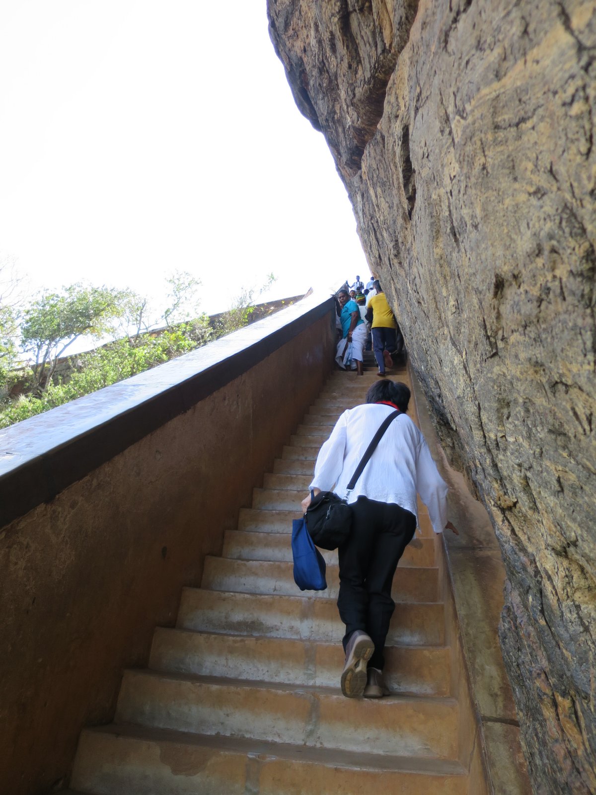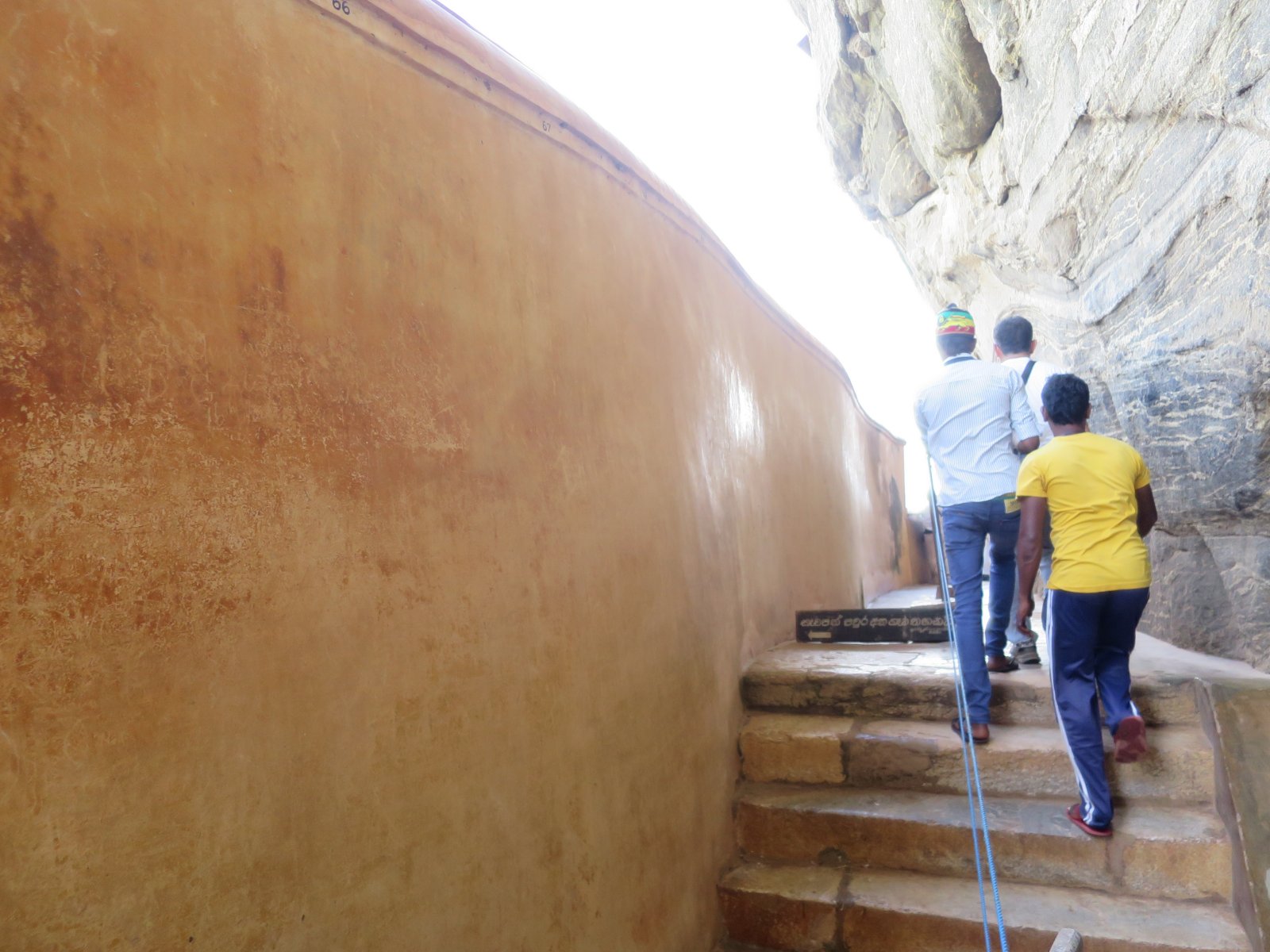 今私は、シギリヤレディーが描かれている場所と、鏡の回廊と言われる場所を繋ぐ階段を下っているわけです。